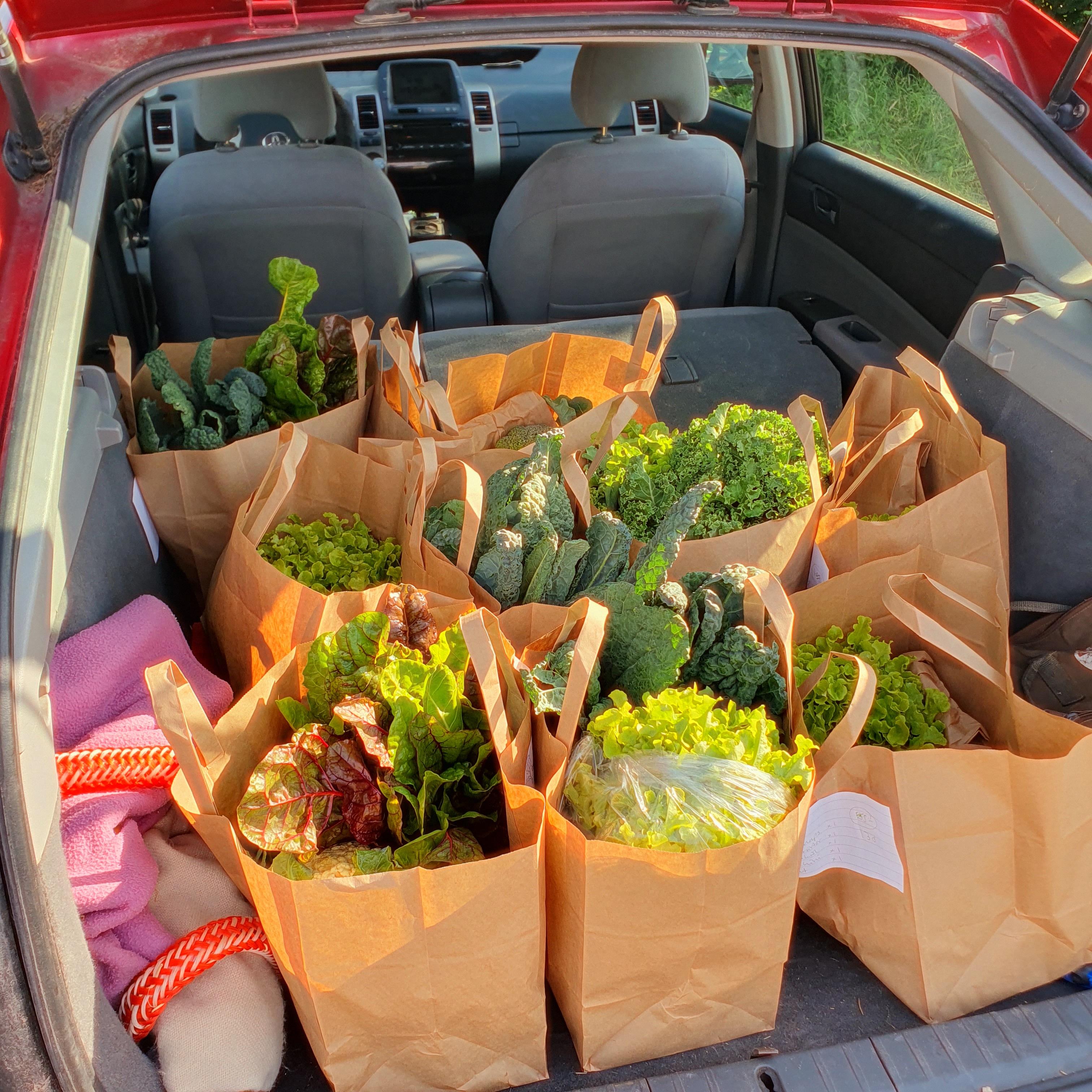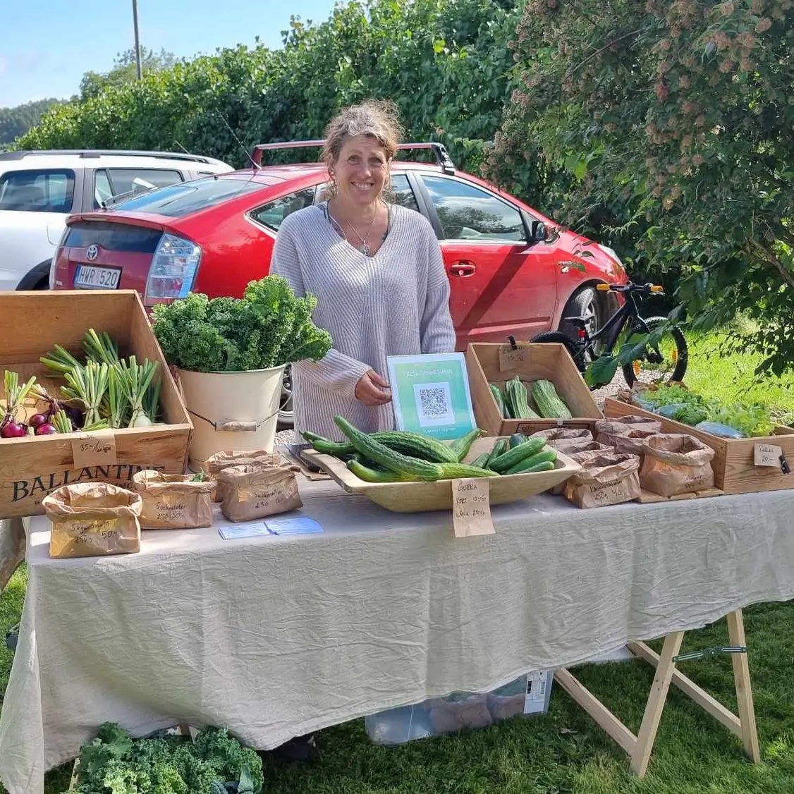 Vi säljer våra färska grönsaker via Reko-ringar, marknader samt i vår egna swishbod.